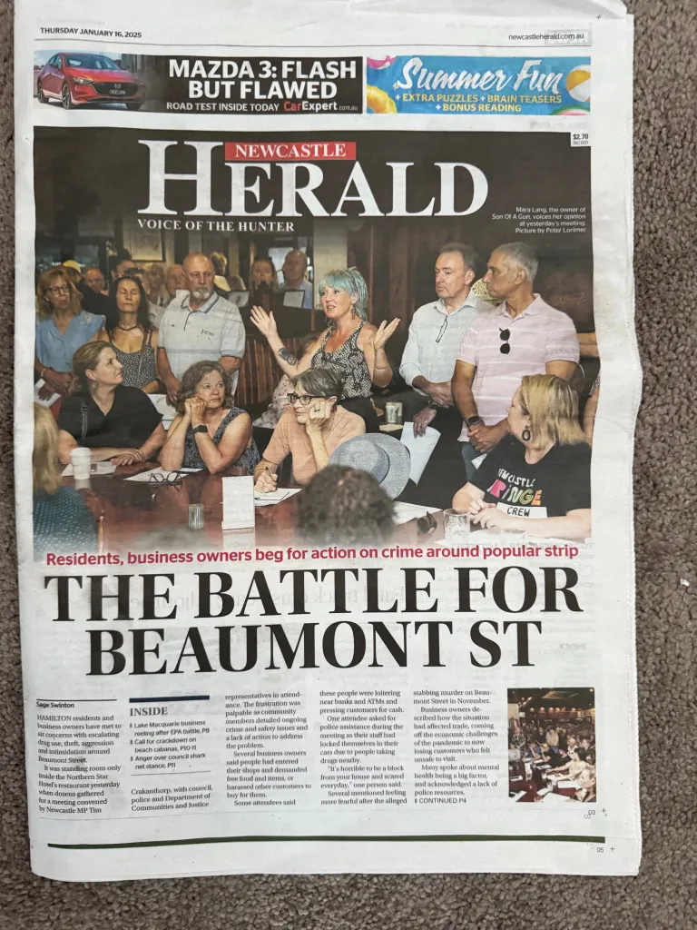 The Newcastle Herald had another article this week about Beaumont Street – it was a well written and fair piece and so I wrote the journalist to thank her – and I suggested that instead of putting a letter in I would be willing to write a column for the paper. She sent it to her boss and they published it today…unedited….and as their main opinion piece in the centre. Already several people have been in touch….cast your bread on the waters….Here is the text.